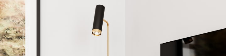 En svart gulvlampe fungerer også utmerket som kontrast til lyse vegger og gulv. Ved å plassere den ved siden av en sofa, lenestol eller speil kan du skape en harmonisk helhet og samtidig gi rommet en sofistikert karakter.