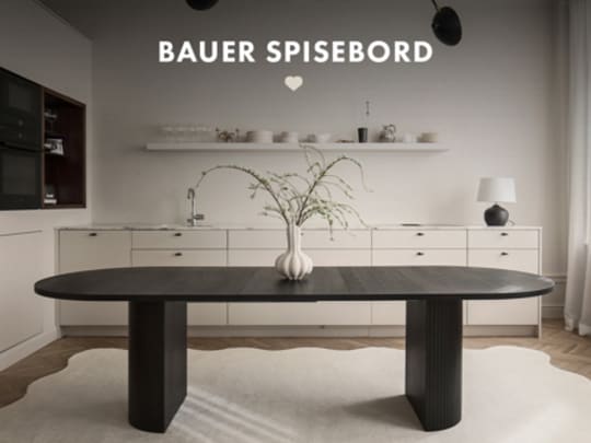 Våre Bauer-bord kommer i størrelsene 220+50 og 250+50. Fargene du kan velge mellom er svartbeiset, brunbeiset, hvitoljet og oljet eik.