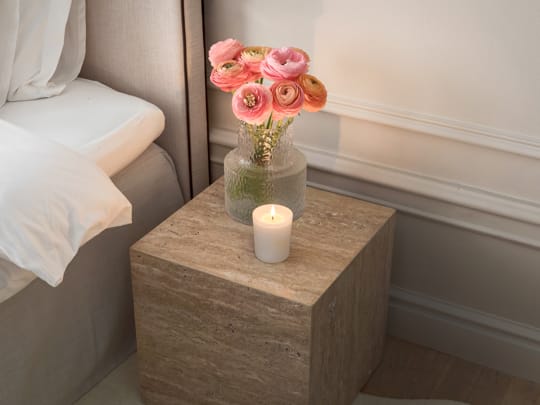 Tilly er et sidebord i vakker travertinstein. Bordet har en firkantet form med tydelige kanter og hjørner. Det stilfulle travertinmaterialet skifter i nyanser av beige, sand og naturhvit, noe som gjør hvert bord unikt. Kombiner det gjerne med sofabordet fra samme serie.