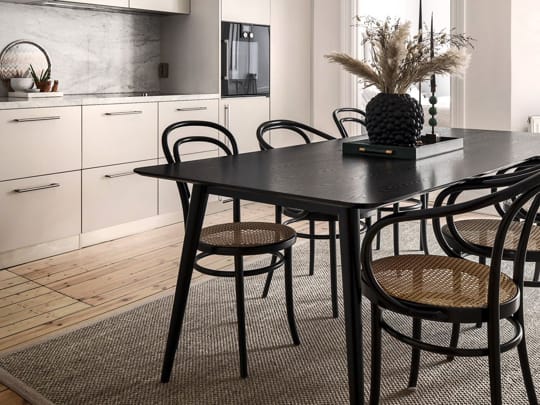 På Sannes kjøkken finner du vårt minimalistiske og meget stilige spisebord Pheno i svartbeiset eik. Bordet har god plass og har plass til hele den store familien.
