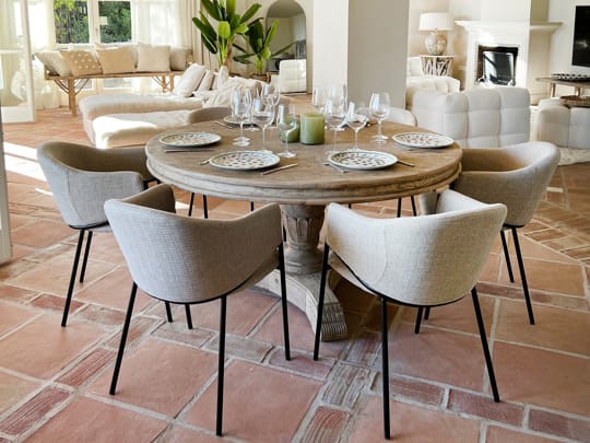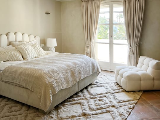 Huskjøpet inkluderte alle møbler og vi i Sleepo hadde frie hender til å skifte og gjøre om. For å bevare det autentiske spanske preget, valgte vi å beholde mye av de eldre møblene og blande det med moderne designobjekter fra vårt eget sortiment. Det ble et vellykket resultat og skapte en fantastisk balanse mellom det gamle og det nye.