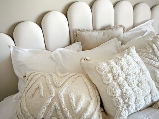 Vi gjorde nettopp det ved å introdusere et nydelig teppe, en Billie loungestol og massevis av fantastiske tekstiler. Sengen fikk et virkelig luksuriøst hotellutseende ved hjelp av vår populære sengegavl Art, med en hel haug med taktile pynteputer og fantastisk sengetøy.