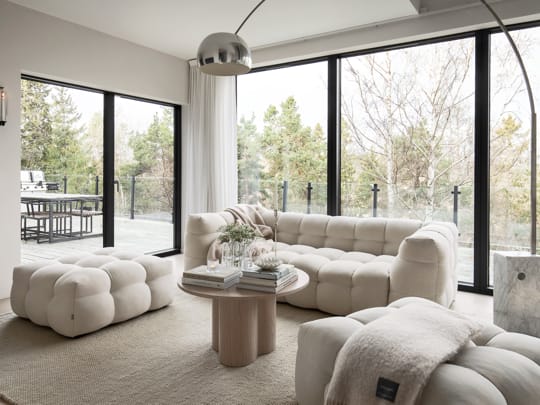 Tre i ulike modeller og toner tar mye plass, mens ribbeflater og lekne, klumpete former også er en trendy favoritt. Dette kombineres best med myke tekstiler og lette ulltepper med bølgende mønstre, taktile strukturer og relieffer.