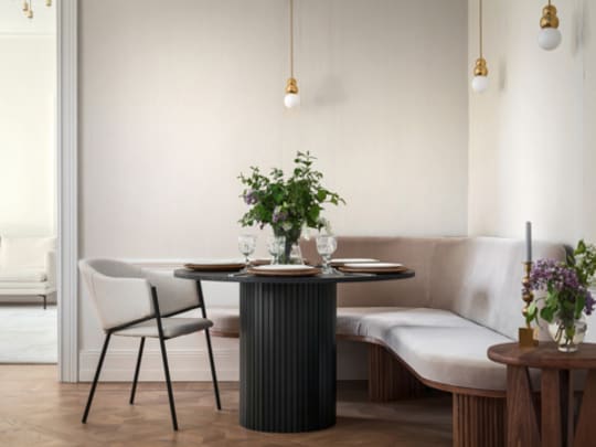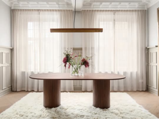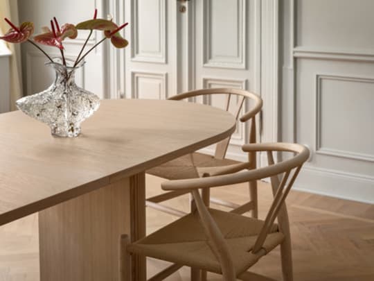 Velg mellom det runde eller ovale bordet i tre utførelser - hvitoljet ask, brunbeiset ask og valnøttbeiset ask.