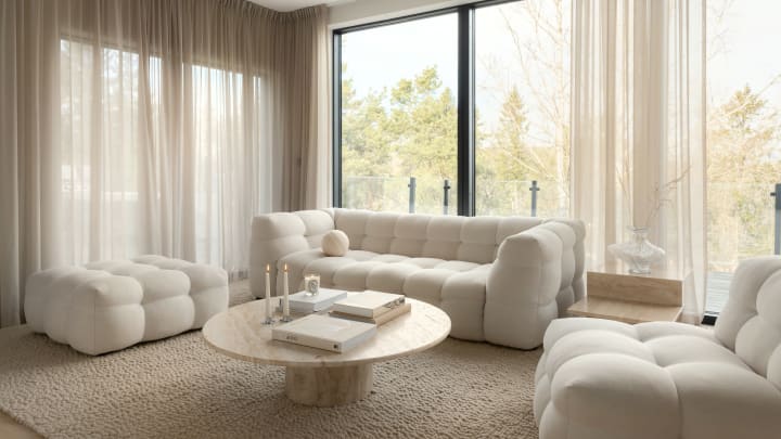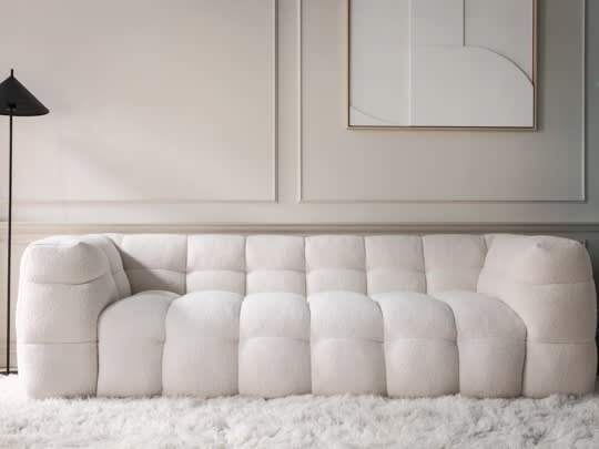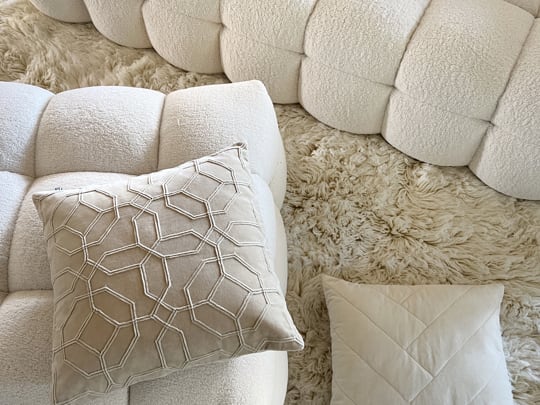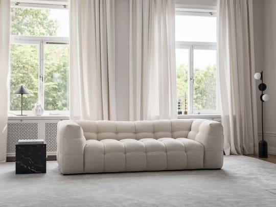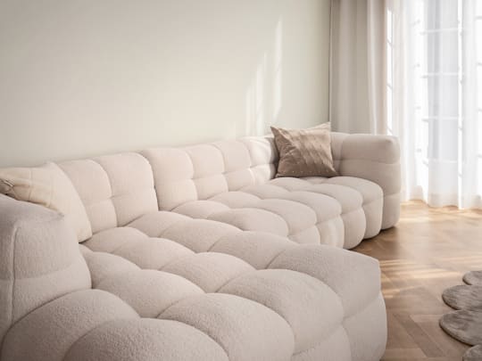Et mykt og koselig stoff som gir deg en omfavnelse når du synker ned i sofaen. Med en naturlig hvit farge og kremet base har stoffet en varm karakter som passer godt sammen med det meste. Akkurat nå elsker vi kombinasjonen av Billie i teddy-stoffet og vår fantastiske ullteppe Vienna! Stoffet krever litt mer forsiktighet enn bouclé-stoffet, men med riktig omsorg får du en sofa som varer lenge.