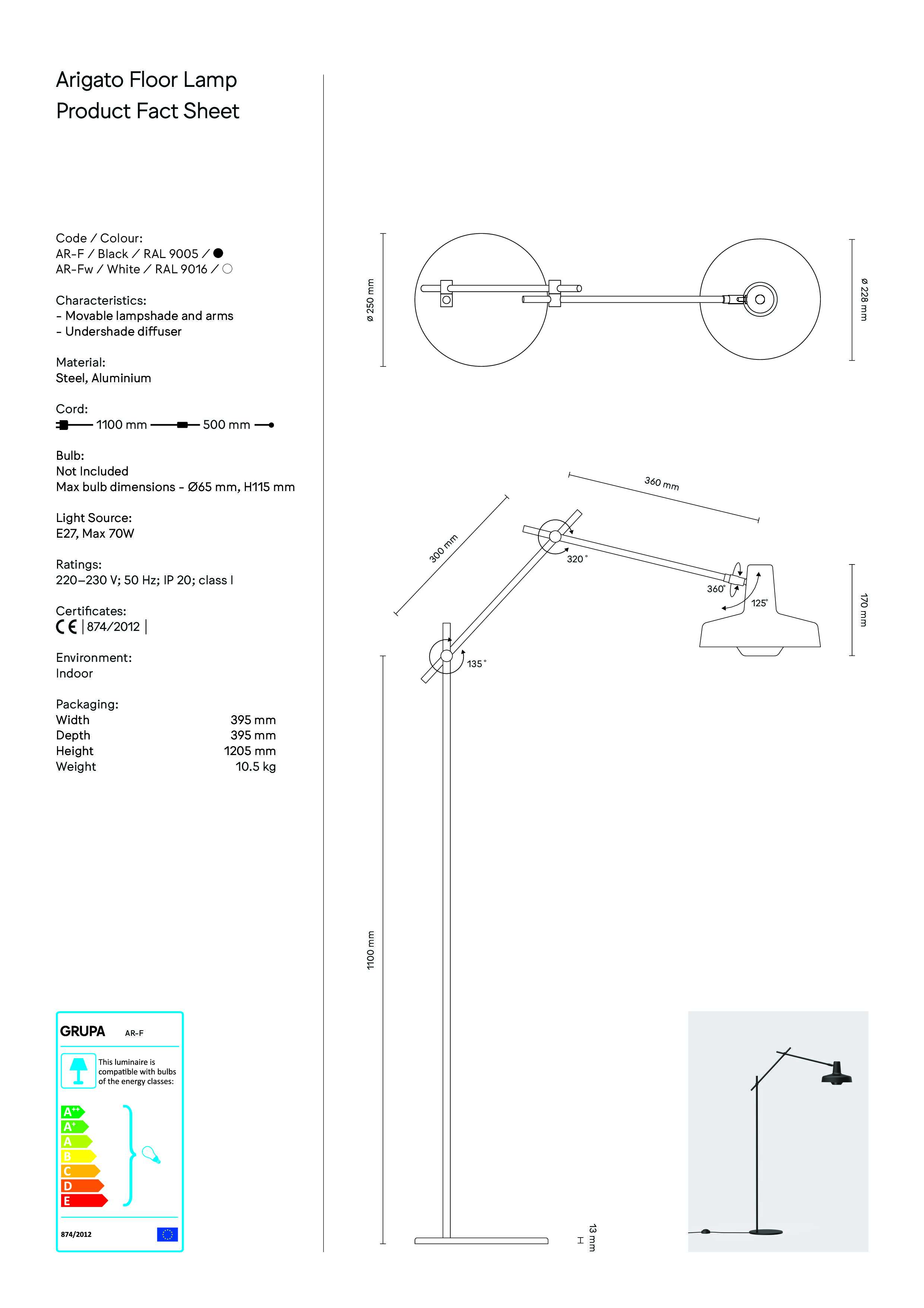 Arigato Gulvlampe Black er en stilren gulvlampe med en fleksibel og funksjonell design. De to justerbare leddene gjør det enkelt å tilpasse lampens posisjon og skape optimal belysning i rommet. Skjermen kan rotere 360 grader, noe som gir full kontroll over lysretningen og gjør lampen perfekt for både lesehjørner og arbeidsområder.